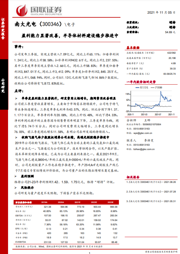 答:公司主要产品的订单基本饱和,各事业部正在根据市场需求,进行扩产认证和筹备工作。MO源苏州工厂主要通过技术革新改造来提升产能;全椒半导体工厂布局的MO源2.0项目正在顺利推进,部分产品进入客户认证阶段;高纯ALD/CVD产品(前驱体)通过扩产和开发新产品满足市场需求;全椒氢类电子特气的扩产正在进行“三同时”手续办理;飞源气体含氟电子特气生产基地通过技术改造和产能扩大,已建成3800吨/年的三氟化氮和3500吨/年的六氟化硫生产线。今年下半年,公司顺应市场需求,在全球电子气体细分市场中,选择乌兰察布作为做强做大三氟化氮等高纯氟系电子材料项目的实验田,项目规划首期建设年产3600吨的三氟化氮生产基地,后续根据市场需求布局三氟化氮扩产和其他氟系电子特气产品。