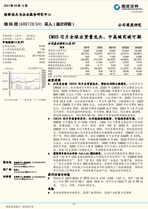 答:公司战略聚焦在手机CIS,近两年在非手机应用的CIS投入也有所增加。手机部分2-5MP市占率达到7成左右,毛利率高、出货量大;8MP由于产能限制有所收缩,目前在销售额中占比不大,但随着产能缓解,以及在国内12寸晶圆厂研发出新的8MP产品,正在一线品牌客户中推广并稳步出货;新的13MP和16MP产品会慢慢加大出货份额,市占率有望提升;32MP/64MP产品研发已到工程样片阶段,进度基本达到预期。公司非手机应用CIS包括安防监控、汽车后装市场,今年前三季度成长很快。