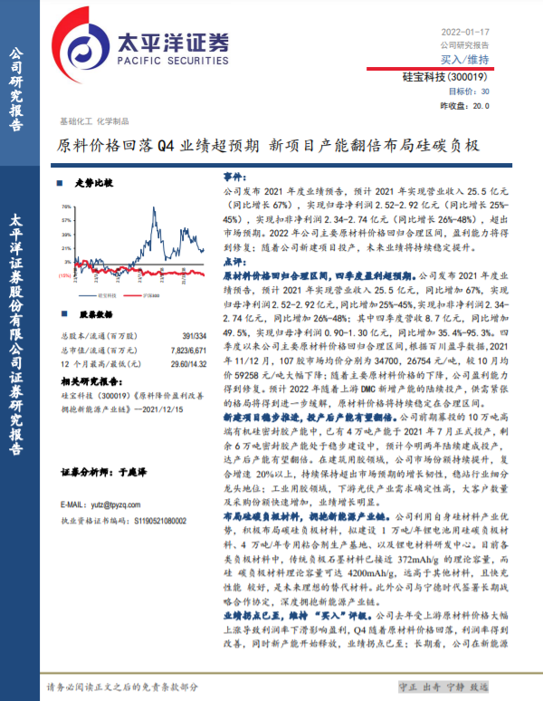 答:全年公司在保证为客户提供高品质产品的同时加强公司内控管理,提升公司精细化管理水平,随着今年7月份公司新增产能全面投产,规模化生产优势明显。2021年公司原材料价格波动较大,三季度公司销售毛利率为21.11%,四季度随着原材料价格回落,公司Q4盈利水平回升明显。根据百川咨询,2021年11/12月,107胶市场均价分别为34700、26754元/吨,较10月均价59258元/吨大幅下降。截止2022年1月13日,DMC最新报价30000元/吨,价格维持在合理区间。公司关注到合盛、河南恒星、东岳硅材、云南能投等均有投产计划,据预计2022年随着上游DMC新增产能的陆续投产,公司预计未来原材料会供应充足,107胶价格将会维持在合理区间,长期利好公司快速发展。