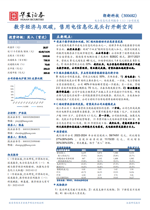 答:2021年公司能源数字化业务整体增长达到35%,其中和电网相关的数字化收入同比增加约25%,体现了加速的趋势,此外公司围绕城市政府等能源领域新的参与者,做了一些探索和布局,由于这些领域数字化业务的收入体量较小,因此增速更快。在电网领域,公司在电力用电服务核心系统、数字新基建、能源服务运营等方面均取得较好发展,新签订单进一步增长,在用电服务核心系统方面,朗新全面参与国网能源互联网营销服务系统(营销2.0)的试点项目建设工作,为下一步的大规模推广做好准备;在新基建方面,朗新协同多个省电力公司建立了能源大数据中心,并发展了各种电力指数、碳排放指数等数据产品,为政府疫情防控、复工复产、产业扶持、碳排放、电力征信提供能源大数据支撑服务,朗新承建了多个省市电力采集主站系统、智慧能源服务平台和电动汽车运营平台,公司已经从营销为主发展到营销+采集双核心业务发展;在能源服务运营方面,随着电价改革的推进和全国统一电力市场的建设,公司加大在电力市场化业务上的投入,发展了市场化售电结算、负荷预测等多款产品并成功运用于多个省市电力公司。在市场化售电、综合能源服务、电动汽车充电等竞争性市场的大发展的趋势下,公司大力发展能源服务运营,开展营销运营,综合能源业务运营、充电桩运营等多种市场化运营工作。我们认为,能源数字化业务将保持较高的景气度。