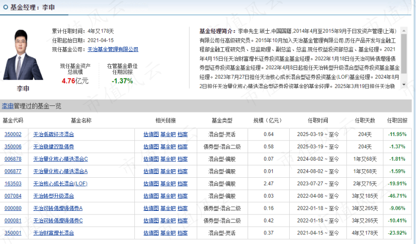 额,对了,天治量化核心精选混合并非基金经理李申旗下表现最差的产品。