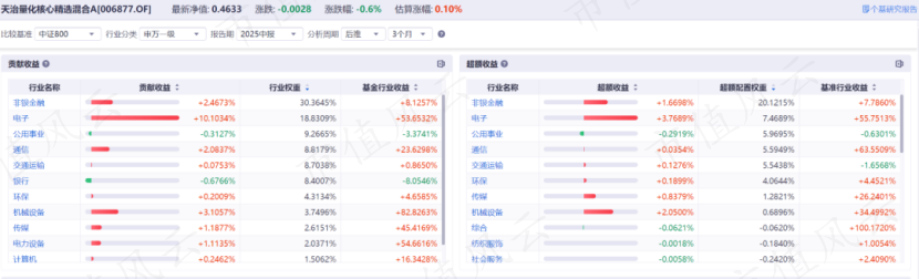 但是天治量化核心精选却是一只押宝型的基金,行业配置非常集中。