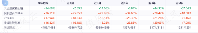 从自然年度来看,天治量化核心精选混合即将实现连续5年大幅亏损的壮举!