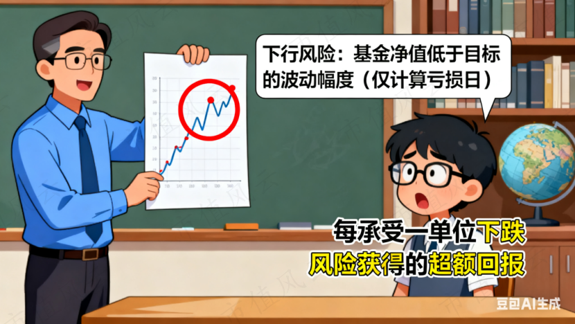 下行风险是什么? 简单说,就是基金净值低于某个目标(比如零或者无风险利率) 的波动幅度。它只计算亏损的那些日子,涨幅再大也不会被计入风险。
