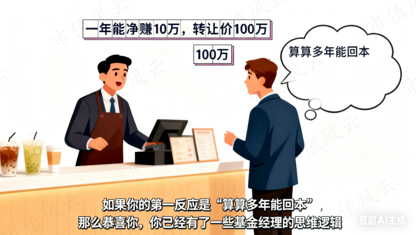 假设你要买一家奶茶店。店主说:“一年能净赚10万,转让价100万。”你觉得是贵还是便宜?