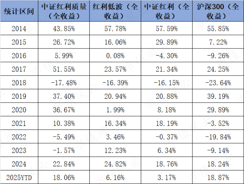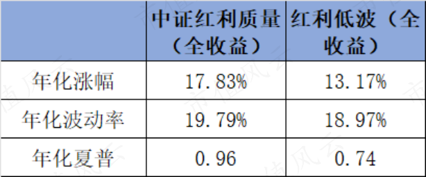 据Wind数据显示,截至12月18日,中证红利质量全收益指数自基日以来的年化收益率高达17.83%,大幅超越同期红利低波全收益指数13.17%的年化收益率。