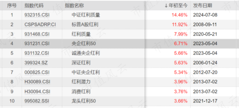 今年以来,中证红利质量指数(932315)在25只有基金跟踪的红利指数中稳居涨幅榜首,显著优于其他红利指数。