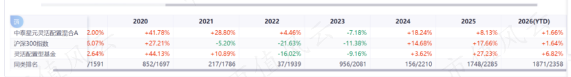 拉长周期,姜诚的业绩非常优秀,他长期管理的中泰星元灵活配置和中泰玉衡价值优选混合年化收益率都在15%+,并且同类排名前20%。
