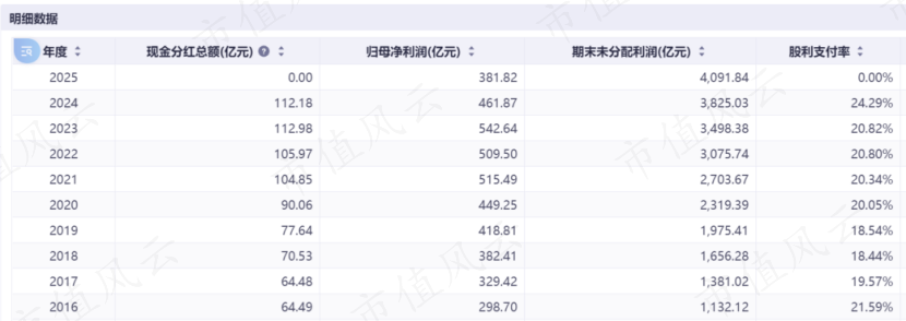 自2020年开始,每年保持20%左右的股利分红率,5%左右股息率,近3年累计现金分红高达331亿元。