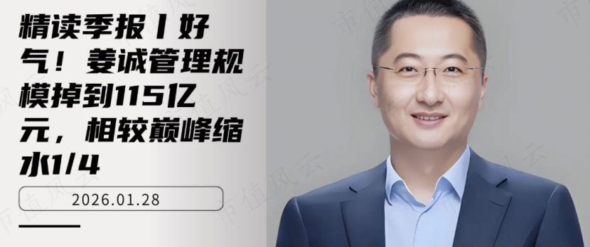 据iFind数据,截至2025年末,姜诚的管理规模为115亿元,相较于2022年4季度的152亿元巅峰缩水了37亿元,缩水幅度1/4。