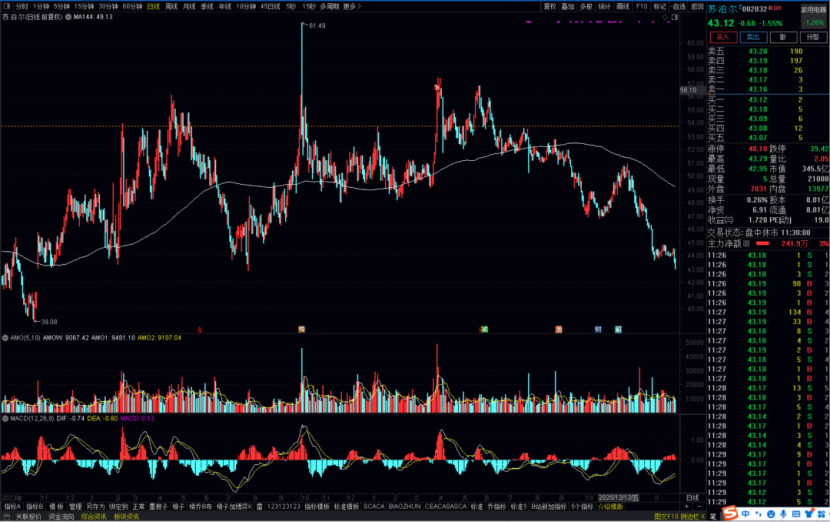 但是苏泊尔就是不涨,大家可以从上面这张截图上看到基毛哥的成本位,已经被套了20%了。