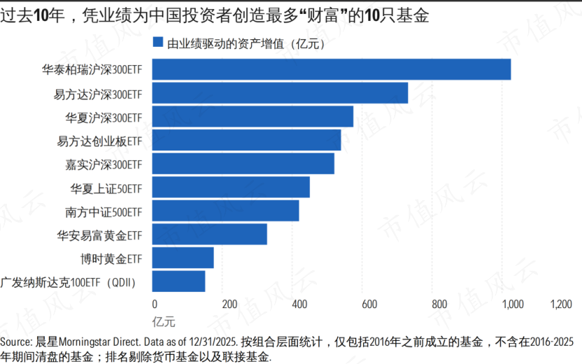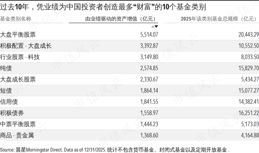 据晨星估算,过去10年,公募基金依靠业绩增长,累计为中国投资者创造了6.27万亿元的财富。