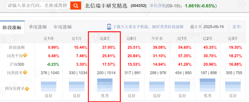 从各阶段涨幅可以看到,北信瑞丰研究精选今年以来收益率为39%,但主要是近3个月创造。