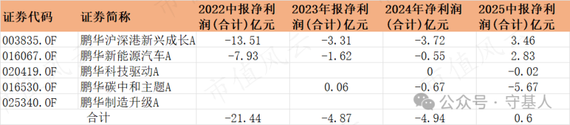 然而,亮眼的净值背后却是大量持有人实实在在的亏损。数据显示,2022年下半年至2025年上半年,她管理的5只基金合计亏损接近30亿元。
