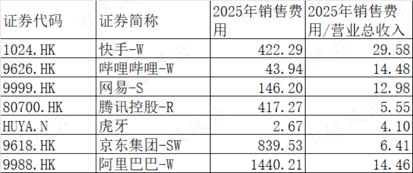 如果把快手的销售费用放到全市场去比,就更扎眼了。