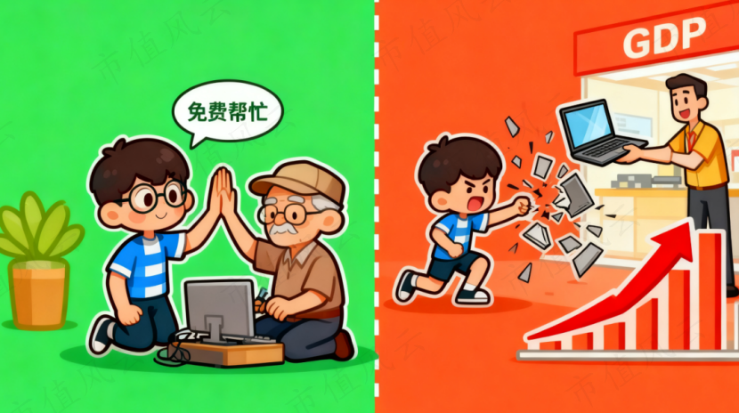 它不衡量“朋友的爱”:你免费帮朋友修好电脑,不计入GDP。如果你把电脑修坏了,他再买台新的,计入GDP。